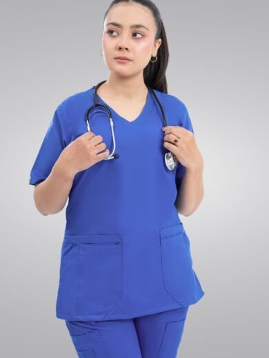 Royal Blue Classic Curve Scrub Suit for Women by MK Scrub
