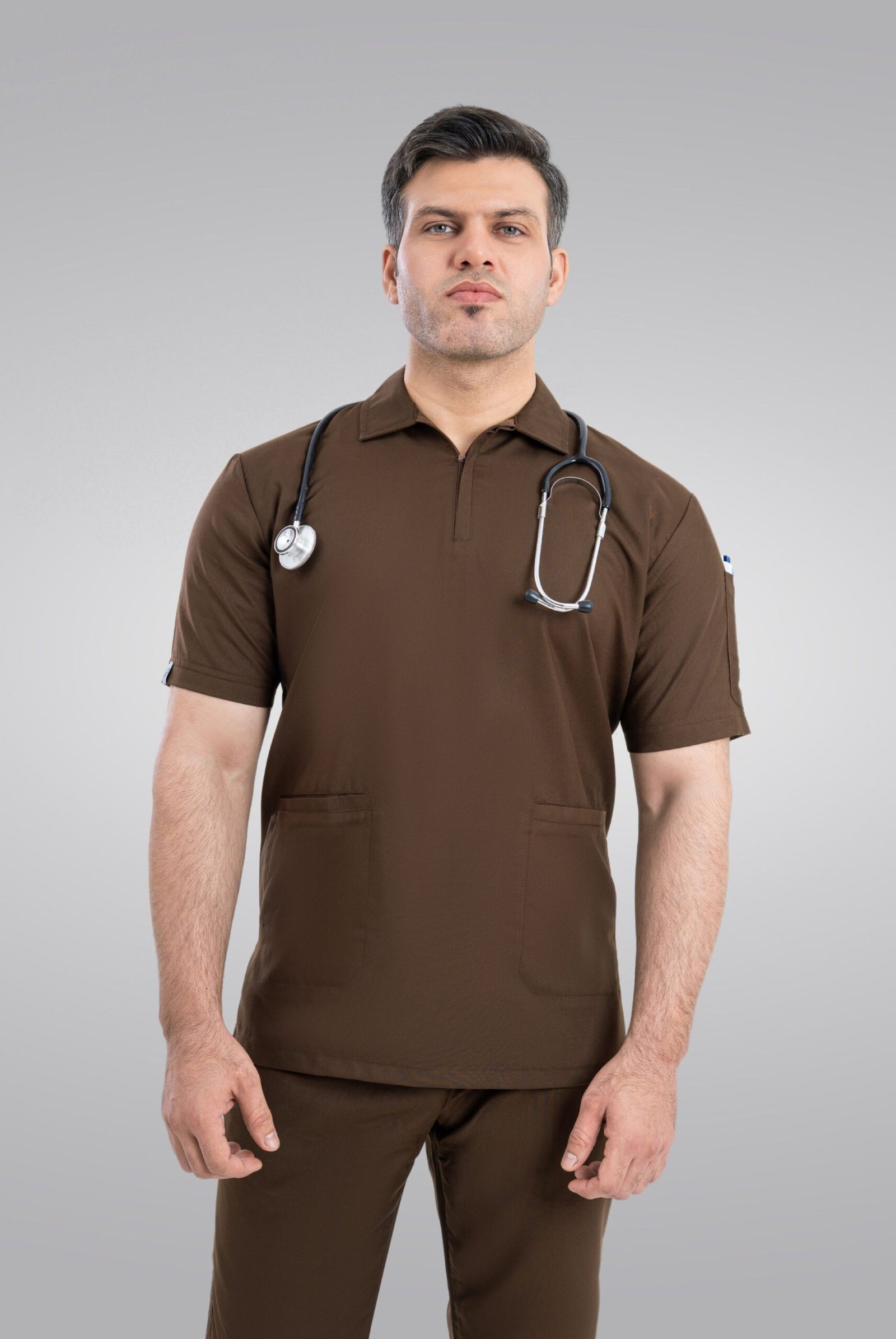 Step into comfort and professional style with the MK Scrub Chocolate Brown Zip Neck Unisex Scrub Suit — a modern take on classic medical workwear. Designed for healthcare professionals who want easy functionality without sacrificing a sharp look, this scrub suit features a smooth zip-neck closure for quick changes and added ventilation. The rich chocolate brown color offers a unique, sophisticated alternative to traditional scrubs while maintaining a clean and professional aesthetic.